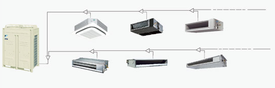 室內(nèi)外機(jī)間以分歧管連接,可自由組合