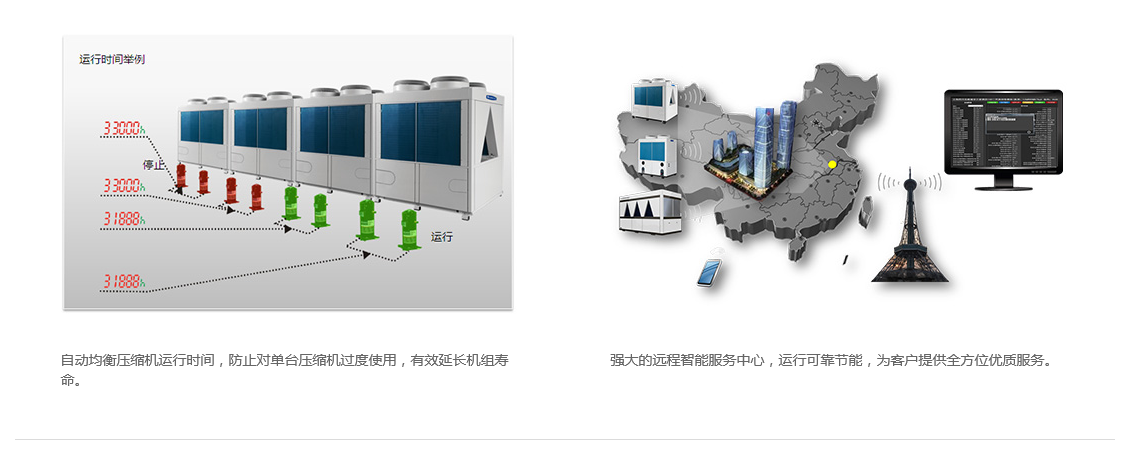 模塊化設(shè)計(jì)、模塊自由組合、不間斷制熱、壓縮機(jī)智能調(diào)控、遠(yuǎn)程智能服務(wù)